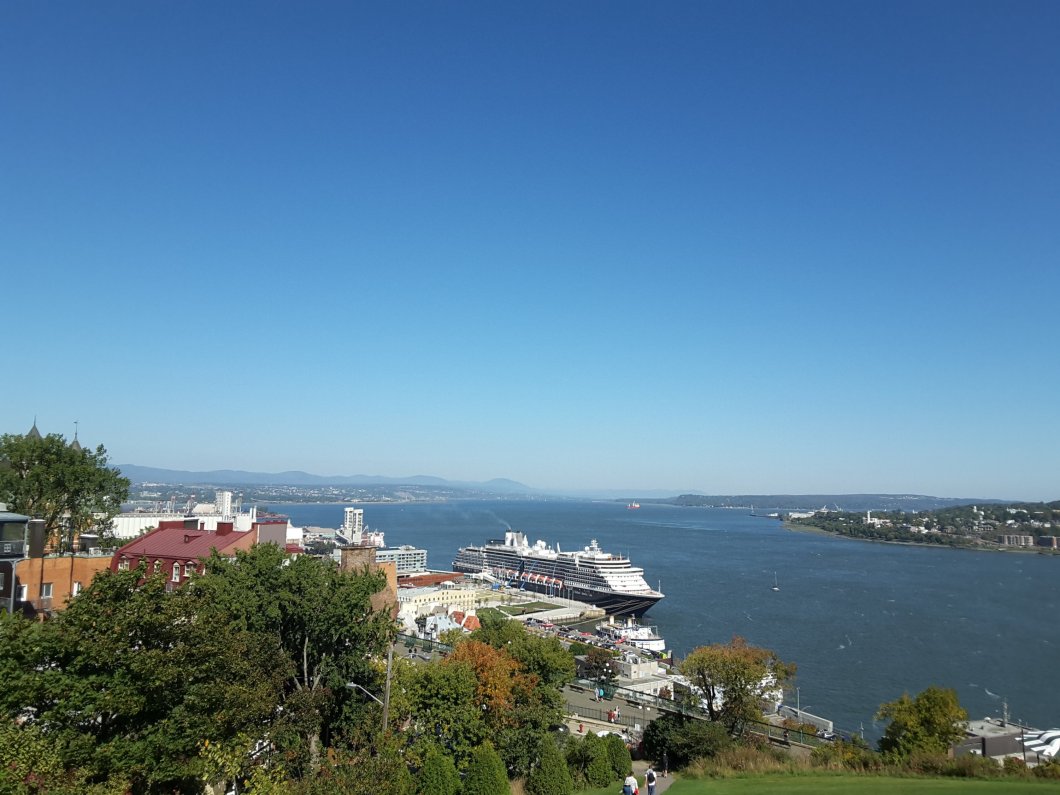 Über die Rue Saint Denis mache ich mich auf den Weg zum alten Stadttor, biege nach links ab, hinauf zu den Befestigungsanlagen, rechts daran vorbei zur Governor’s Promenade. Vom Pavillion am Ende der Promenade aus hat man einen sagenhaften Blick auf den Sankt Lorenz-Strom.