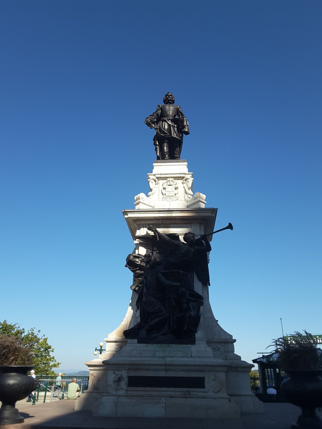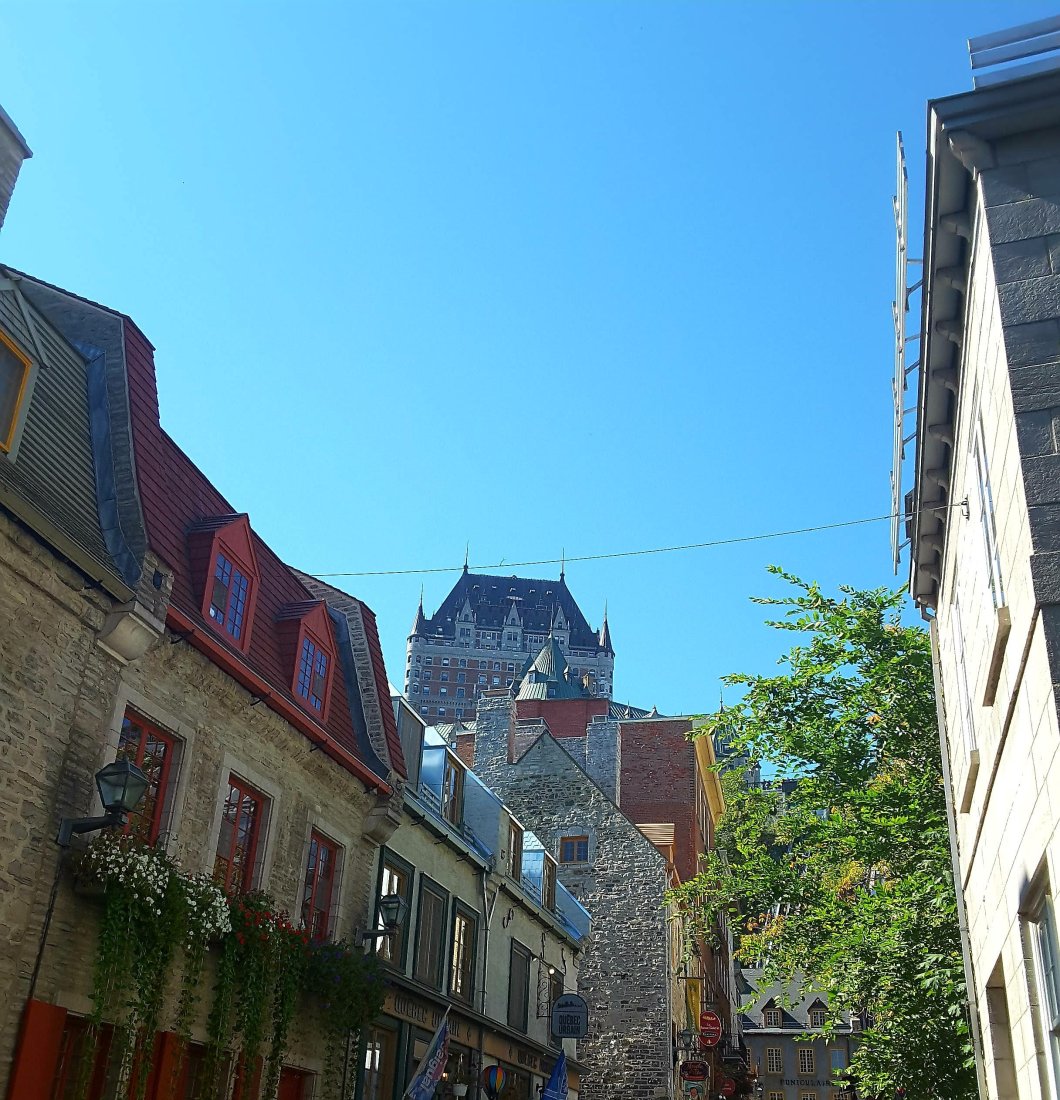 Wer nicht zu Fuß gehen will, kann das Furniculaire nutzen, ich steige jedoch über die Cote de Montagne hinauf zum Place d’Armes, mit Blick auf das Chateau Frontenac, das heute ein Luxushotel ist. Ich durchquere den Innenhof des Schlosses und verweile ein wenig auf einer Bank im Park nebenan, bei Sonnenschein, angenehmen 21 Grad und kühlem Wind.