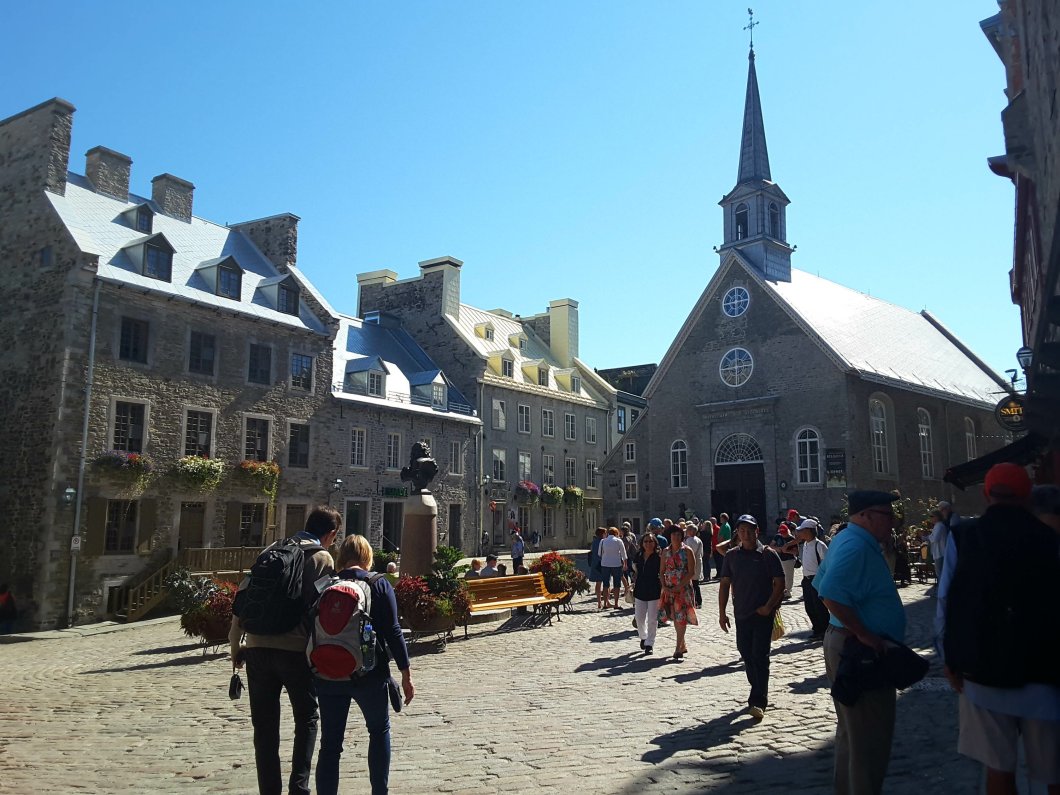 Die Unterstadt drängt sich rings um die Place Royale, die, analog der Place Royale in Montreal, ebenfalls die erste Siedlungsstätte markiert. Quebec wurde übrigens von Samuel de Champlain gegründet und ist nach dem indianischen Wort „kebec“ (wo der Fluss einen Knick macht) benannt. Hier unten reiht sich Souvenirladen an Restaurant und andersherum.