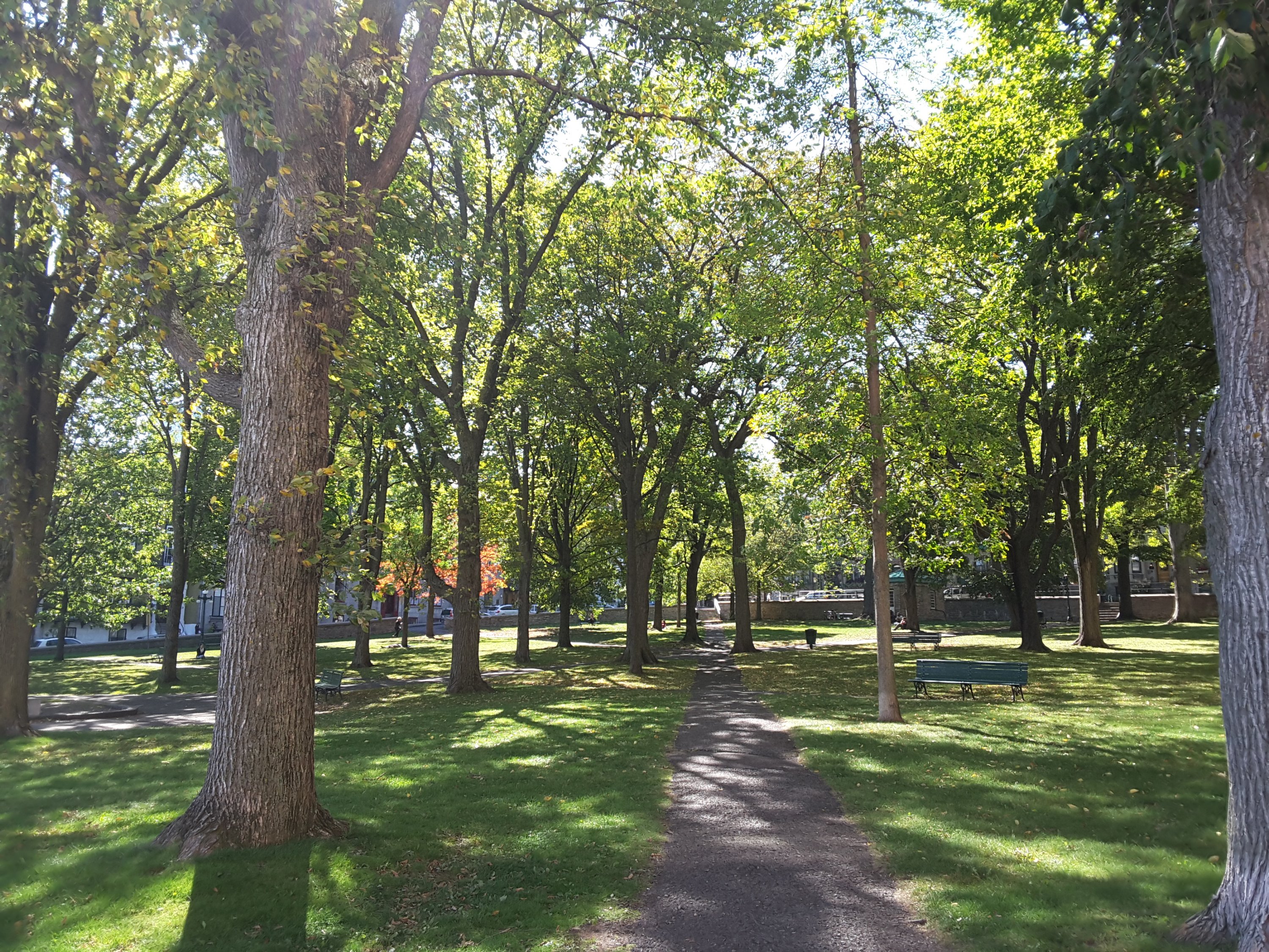 Über die Rue Saint Denis mache ich mich auf den Weg zum alten Stadttor, biege nach links ab, hinauf zu den Befestigungsanlagen, rechts daran vorbei zur Governor’s Promenade. Vom Pavillion am Ende der Promenade aus hat man einen sagenhaften Blick auf den Sankt Lorenz-Strom.